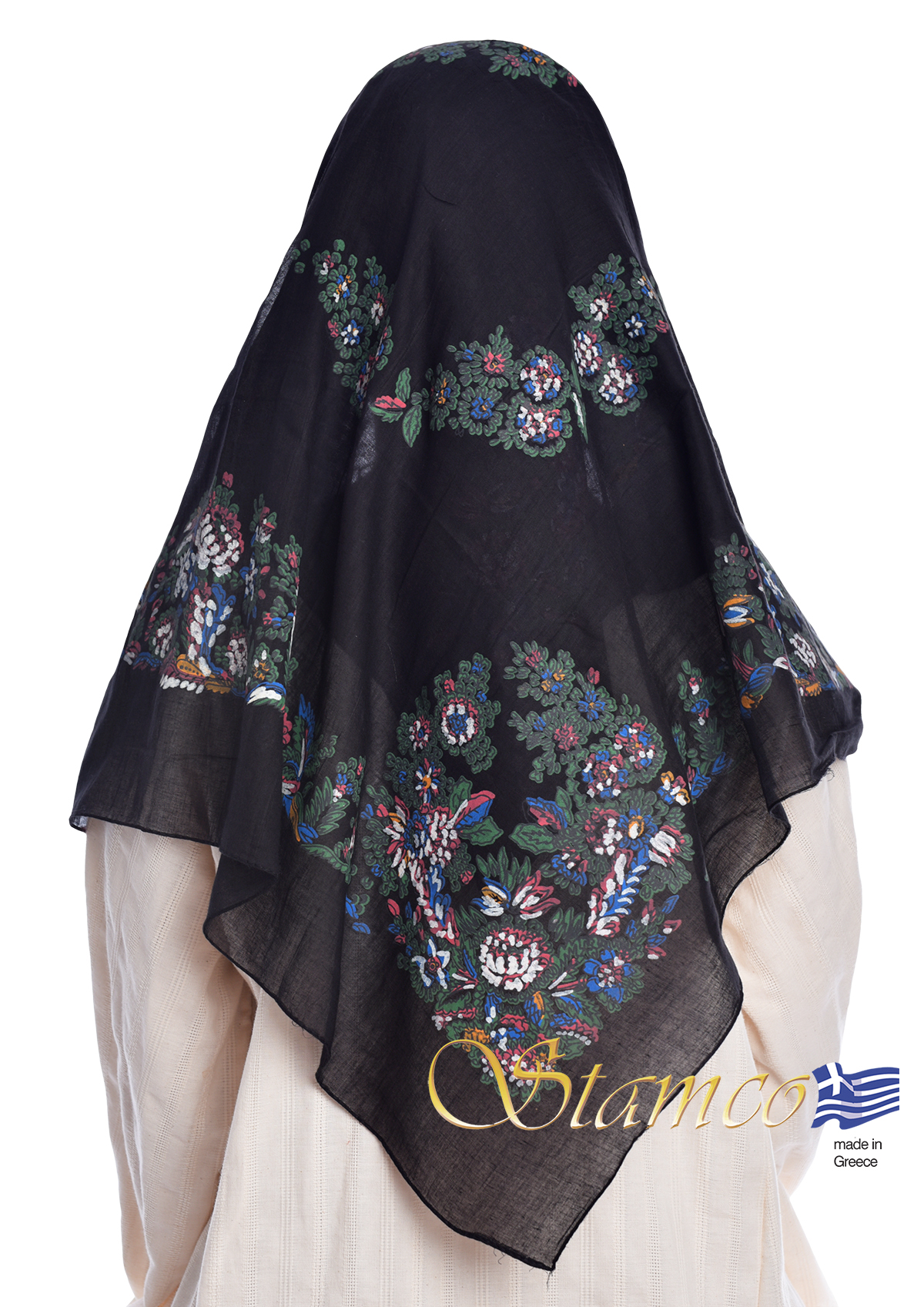Παραδοσιακό Μαντήλι Βαμβακερό Μαύρο με τυπωμένα λουλούδια.